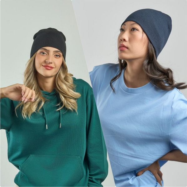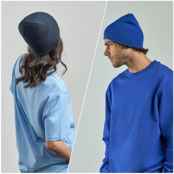 Strickmütze von Atlantis, gefertigt aus 60g, 100% recyceltem Polyester. Feiner 2-lagiger Rippstrick, weicher Griff, Tear Away Label. Größe: onesize.