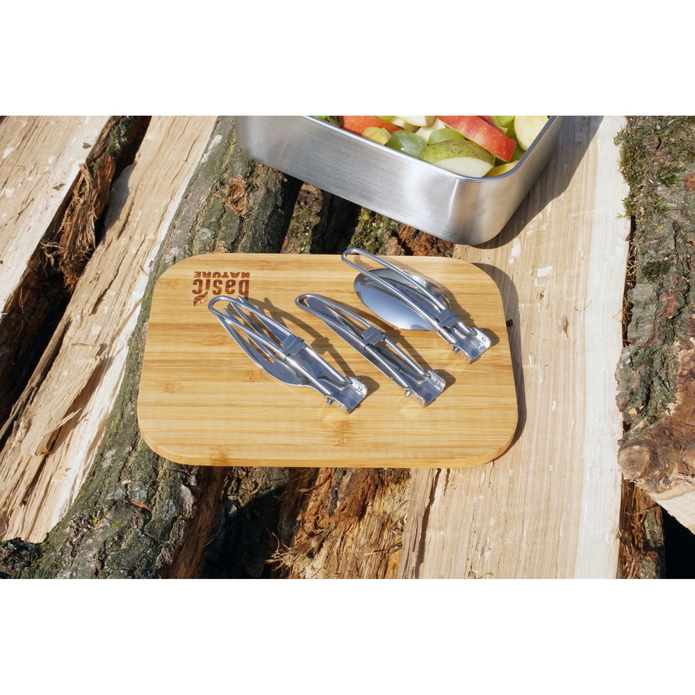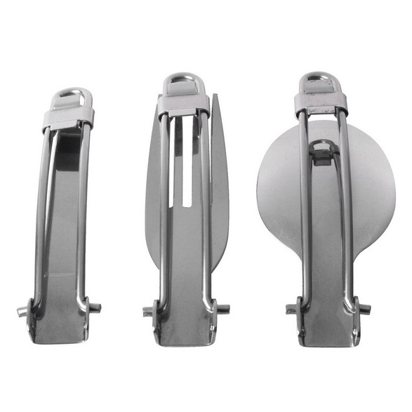 Dieses Besteckset zeichnet sich durch ein sehr kleines Packmaß sowie das sehr leichte Gewicht aus. Es ist aus hochwertigem Edelstahl gefertigt und wird in einem praktischen Nylontäschchen geliefert. Die einzelnen Besteckteile sind zusammenklappbar und werden während der Benutzung arretiert. Das ideale Besteckset für den Genuss unterwegs.