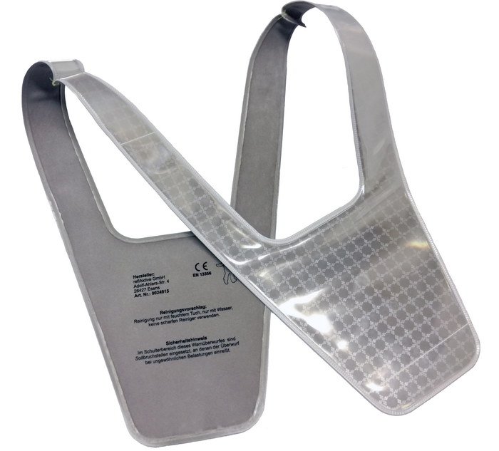 Hochreflektierender Sicherheitskragen für Kinder zum Überhängen, Zertifiziert nach EN 13356, mit Sollbruchstelle im Schulterbereich – vom TÜV geprüft. Sicherer Begleiter für Ihre Kinder im Straßenverkehr – geeignet für alle Wetterlagen, einfach überziehbar und bequem tragbar. Mehrfarbig bedruckbar