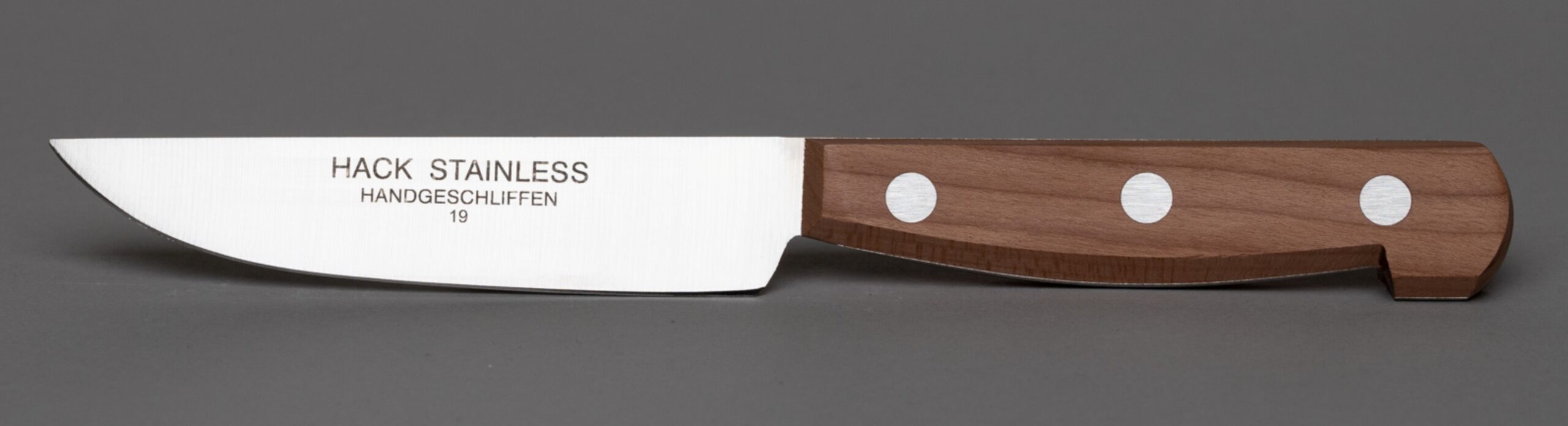 Klingenstahl 1.4034 konisch geschliffen, weshalb langanhaltende Schärfe garantiert ist.