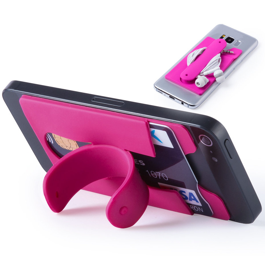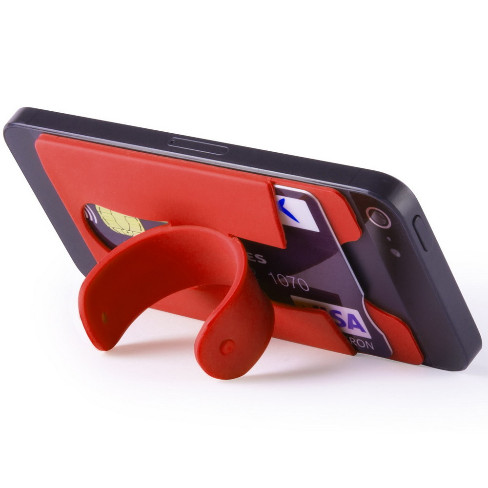 Vielseitig verwendbare Hülle zum Aufkleben aus weichem Silikon in vielen verschiedenen Farben. Der Kartenhalter erhält durch seinen Klappmechanismus gleichzeitig eine Funktion als Mobiltelefon-Ständer. Platz für 1 Karte.