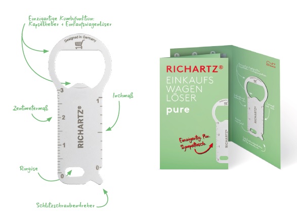 Der hochwertig aus Edelstahl gefertigte Einkaufswagenlöser passt mit seinem puristischen Design an jeden Schlüsselbund. Durch Einkaufswagenlöser und Flaschenöffner in einer einzigartigen Kombifunktion auf kleinstem Raum und weitere nützliche Funktionen ist er der perfekte Begleiter für jedermann.