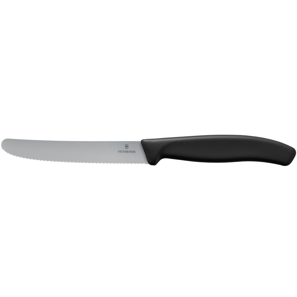 Vertrauen Sie dem Original – Victorinox Swiss Classic Tomaten und Tafelmesser mit Wellenschliff und 11cm Länge. Nachhaltige Werbung ist einfach die bessere Werbung. Inklusive Klingenschutz neutral. SWISS MADE.