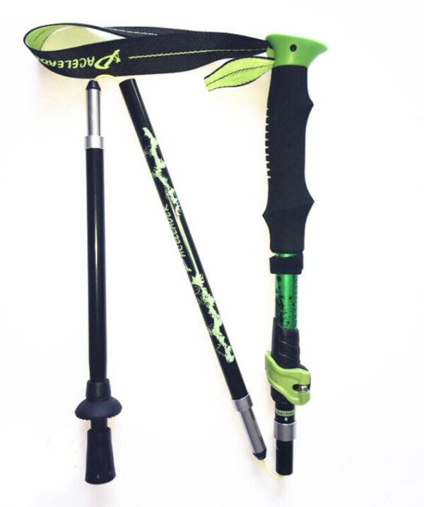 1 Paar Walking-/Wanderstöcke, Größe: 37 – 135 cm, Material: Aluminium / Kunststoff, Farben: grün und violett