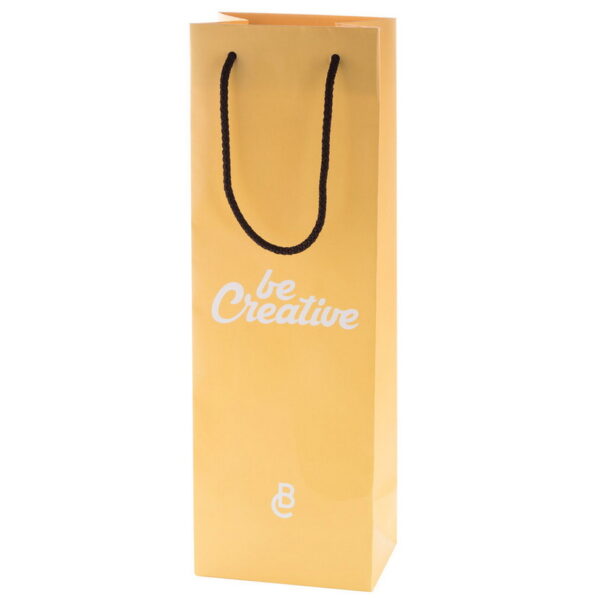 Individuelle Papier-Einkaufstasche mit Henkeln aus PP. Papier 200 Gramm, Glanz laminiert. Abmessungen: 130×390×90 mm